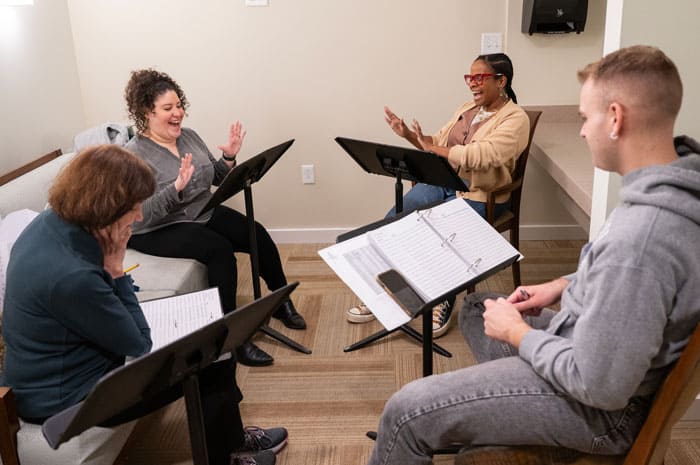 After the students have written their plays, Phase 2 brings them one step closer to seeing their work come to life. Returning teaching artists, Chautauqua Institution staff, and community volunteers come together to form play reading groups. Each student’s play is read aloud, with actors bringing the stories to life in front of the student’s eyes. This is where the magic happens — young playwrights hear their words performed and, in the process, experience the joy of seeing their ideas transformed into action. The energy in the room is palpable as the students witness the power of their own creativity.