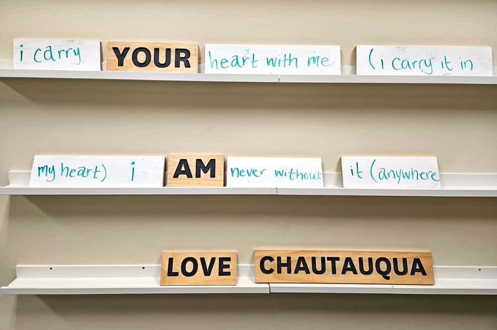 Throughout the summer, novice and experienced poets are invited to share their voices at Makerspace! Created in partnership with the Wick Poetry Center’s Traveling Stanzas at Kent State University, the Makerspace has been a unique part of Chautauqua Literary Arts since 2018.