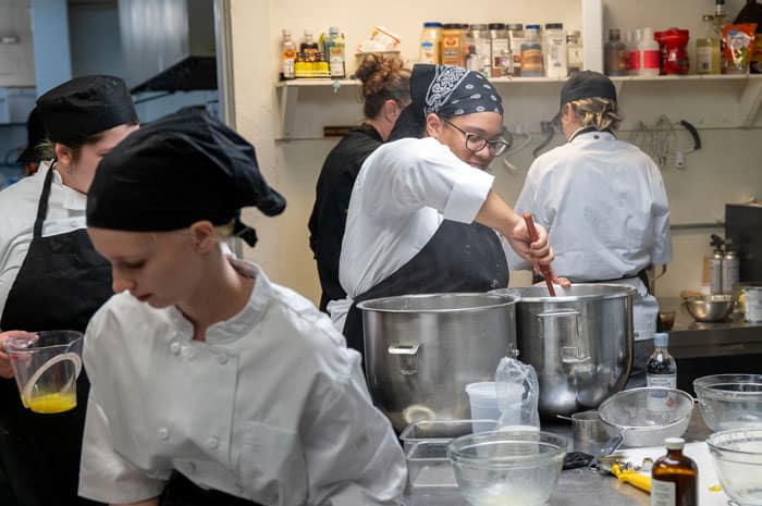 Pastry chefs working in the hotel kitchen