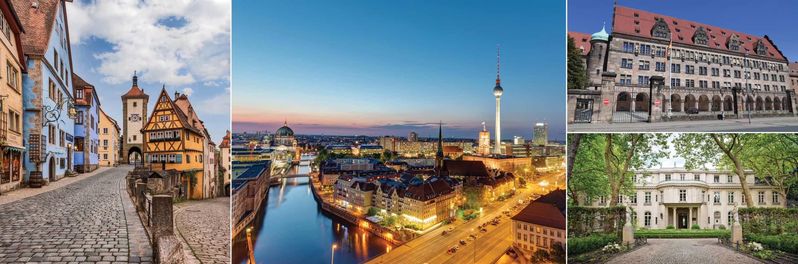 Your day begins with a lecture from Kristan McMahon about the Nuremberg laws and how they reshaped life for many of Germany’s citizens. Then discover exhibits on Jewish life, culture, and resilience throughout history on a guided visit of the Jewish Museum. Embark on a coach tour of World War II sites throughout the city, with stops by the Reichstag, former Nazi Ministries, and the WWII memorials. Explore Berlin’s culinary scene on your own for lunch. After lunch, learn about the courageous individuals who resisted Nazi persecution and helped save Jewish lives with a visit to the Silent Heroes Memorial Center. Visit the House of the Wannsee Conference where the “Final Solution” was planned. Then, visit Villa Liebermann, a lakeside villa and memorial to Jewish culture before World War II. End a full day of exploration with a lively meal in a historic venue with classic German charm.