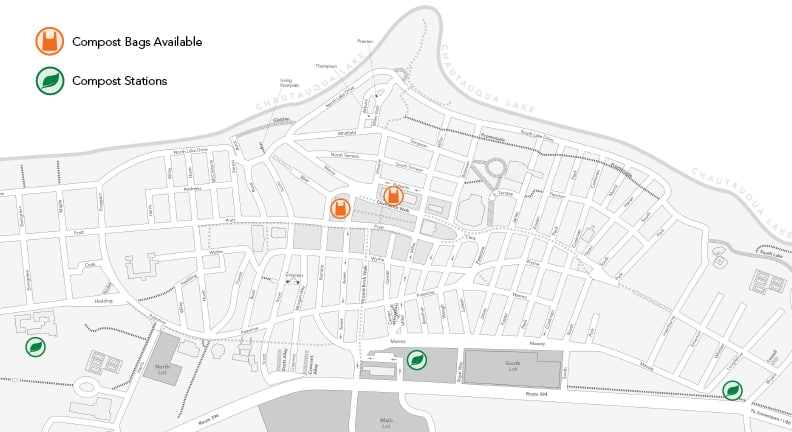 - Collection of compostable yard and kitchen waste by Chautauqua Institution’s Buildings and Grounds department including the removal of leaves in the fall.